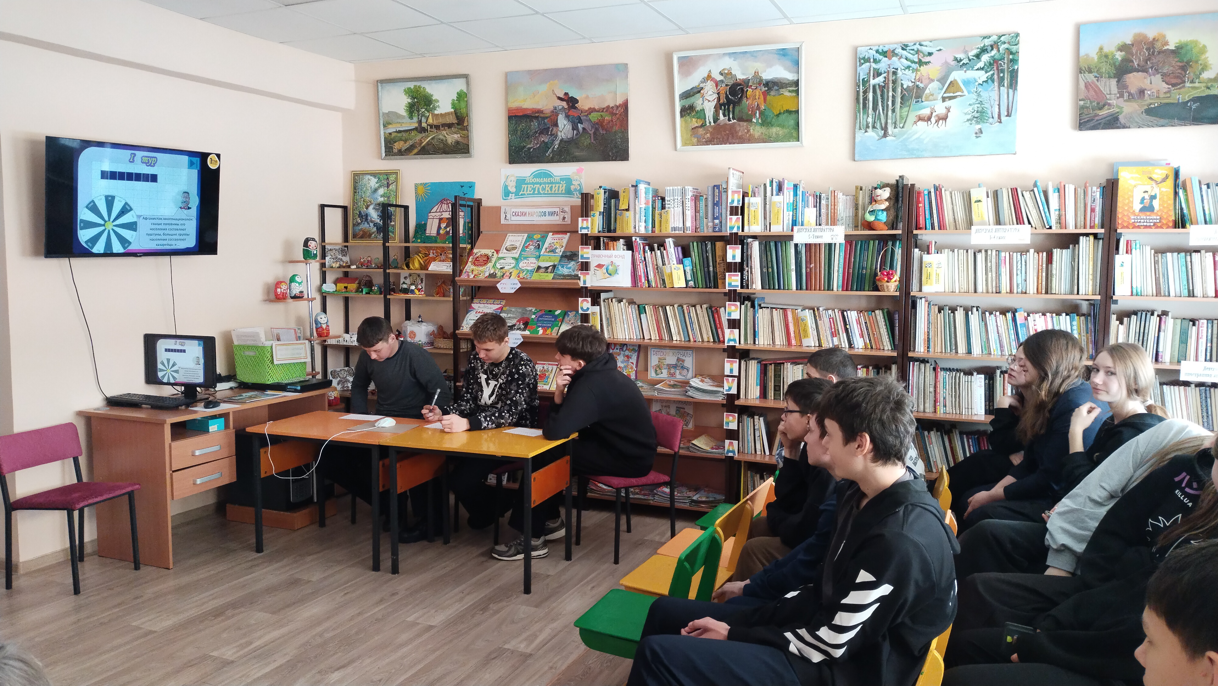 26 ноября. В Илькинской сельской библиотеке прошло мероприятие – интеллектуальная игра «Юный эрудит». Для участие в нем были приглашены учащиеся 10 класса Илькинской СОШ. Ребята разбились на три команды, для которых сами придумали названия, и приступили к игре. Вопросы игры были разбиты на 4 категории: «Война», «Братья наши меньшие», «Экономика», «Солянка». Ребята сами выбирали нужную категорию и «стоимость» вопроса в баллах – от 20 до 60. Самый сложный вопрос на 100 баллов содержался в «черном ящике». Игра прошла весело, с азартом, никто не скучал, ребята не только продемонстрировали свои знания, но и пополнили свой багаж знаний! Победила, конечно же, дружба! Мероприятие проведено по Пушкинской карте.